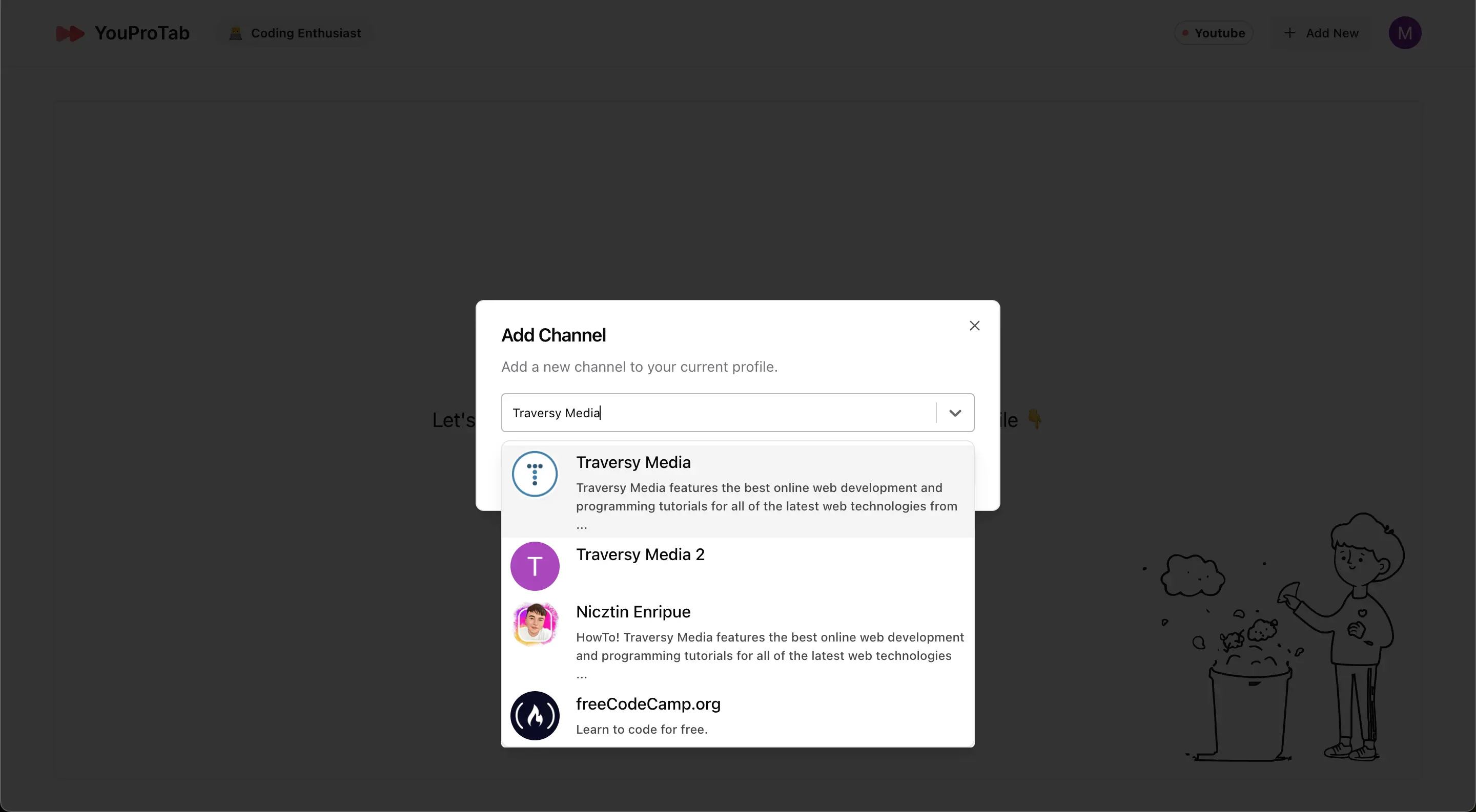 The YouTube Mode in YouProTab is a game-changer. I love how I can create my own profiles and add my favorite channels. It's great to have the latest videos from my added channels all in one place. It's like having my own personalized YouTube feed!