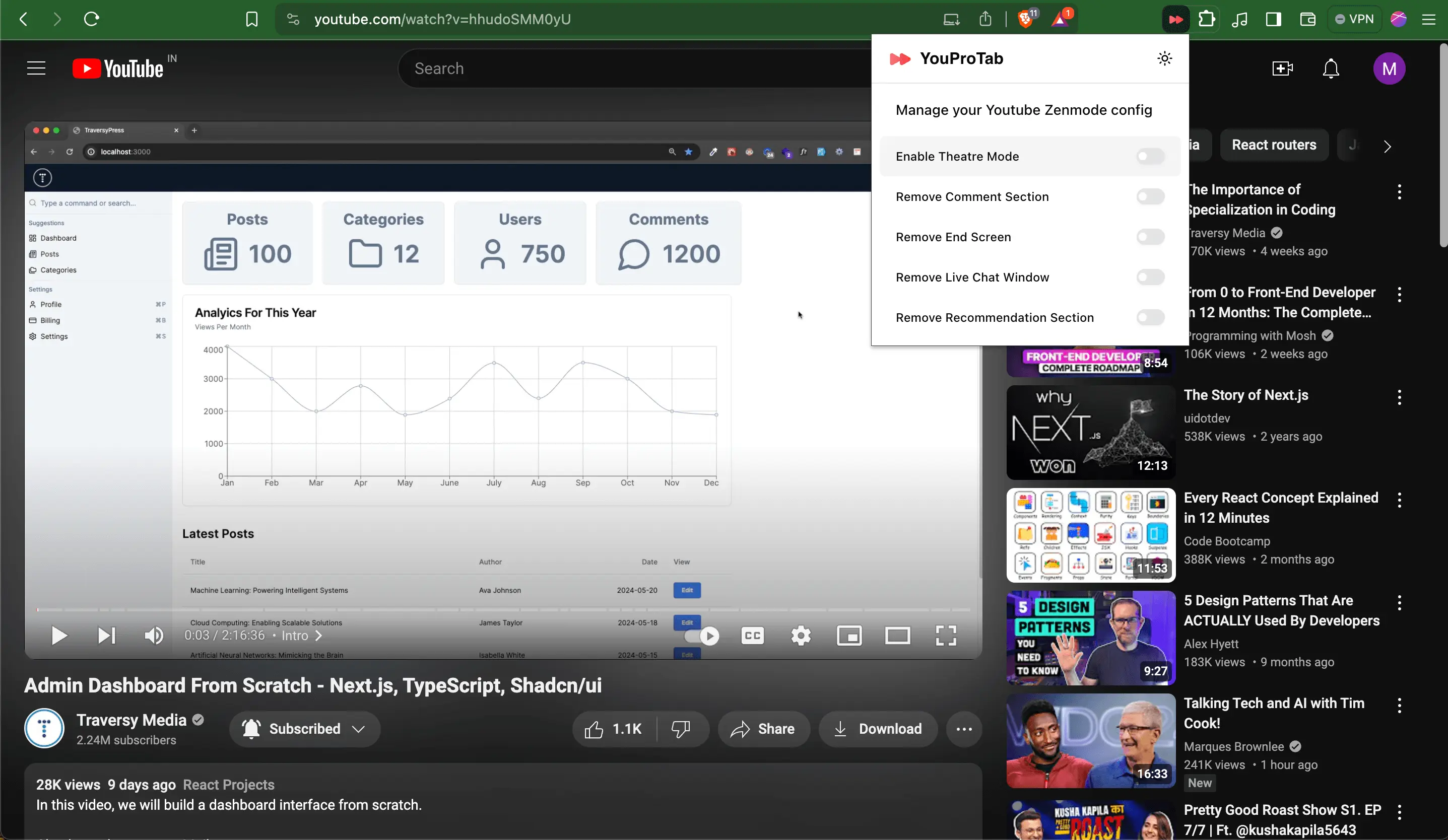 YouProTab has been a painkiller for my browsing habits. Previously I used to think how I am going to stop myself from opening youtube because once you open youtube after watching one or two meaningful/ work-related videos, you end up watching some random foolish useless videos wasting so much valuable time of yours. But now with YouProTab, I directly open the youtube video I want to watch and then toggle the zen mode on and I am done. I can watch the video without any distractions and then close the tab.It's that simple. I am loving it.