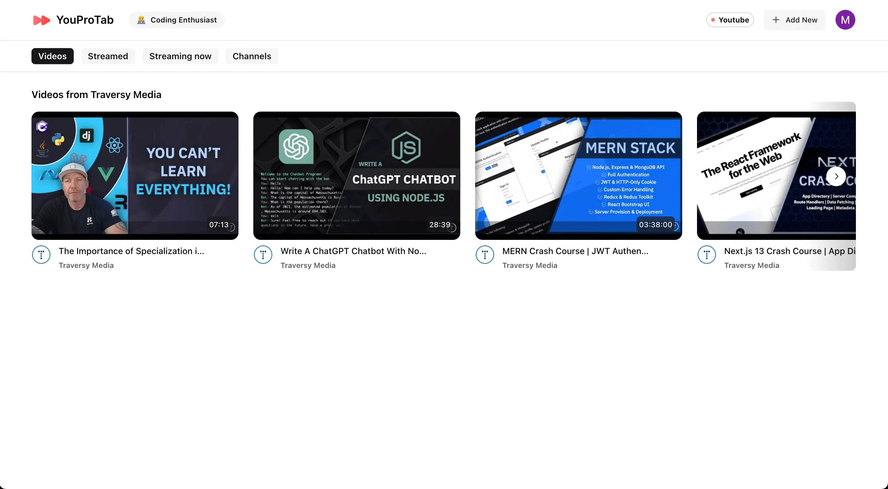 Each profile will display the latest 5 videos from the added channels, helping you stay updated with the goal of the profile.